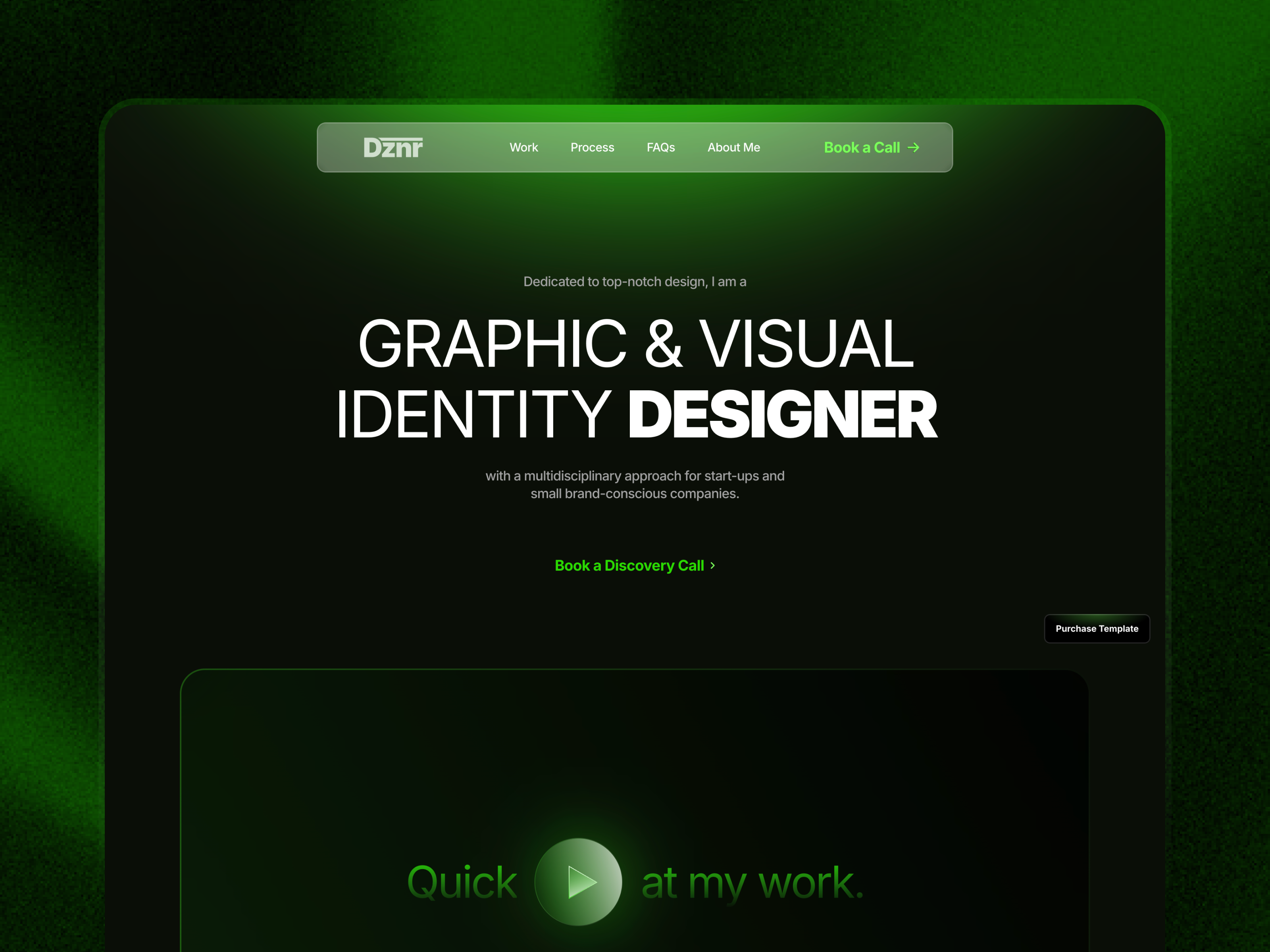 Take the first step to mark your online presence.Live demo: https://dznr.framer.website The DZNR Portfolio Website Template is a visually stunning and highly functional template created specifically for designers. Built with Framer, a no-code tool, this template makes it easy for designers to showcase their portfolios and creative projects. Ideal for designers seeking a professional online presence. Features: Modern & Attractive Design100% Responsive: Optimised for desktops, tablets, and mobile devicesHigh-Quality Animations and Interactive ElementsFast Load TimesTailored to meet web standardsEasy to Edit and customise: No coding required Pages: HomeThe home page includes these sections:ShowreelServicesWork/PortfolioProcessTestimonialsFAQFooter404 Please feel free to contact me if you require any assistance along the way:Mail: [email protected]/X: dhrumilkherde 🎁 Get 3 months of Framer Pro for free! On purchase of an annual pro subscription from this link. → Use the code "partner25proyearly" when purchasing framer subscription